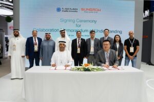 جاء هذا الإعلان بالتزامن مع استعراض جامعة خليفة لـ 8 مشاريع في نسخة عام 2025 من القمة العالمية لطاقة المستقبل، حيث وقّع مذكرة التفاهم كلٌّ من سعادة البروفيسور إبراهيم الحجري، رئيس جامعة خليفة وتومسون ديمو، نائب رئيس شركة صن غرو بي في وستوريج بي جي، في الشرق الأوسط. وتعتبر صن غرو شركة متخصصة في صناعة العاكسات الشمسية وأنظمة تخزين طاقة البطارية وتحظى بمكانة متميزة محليًا وعلامة تجارية راسخة في سوق دولة الإمارات.