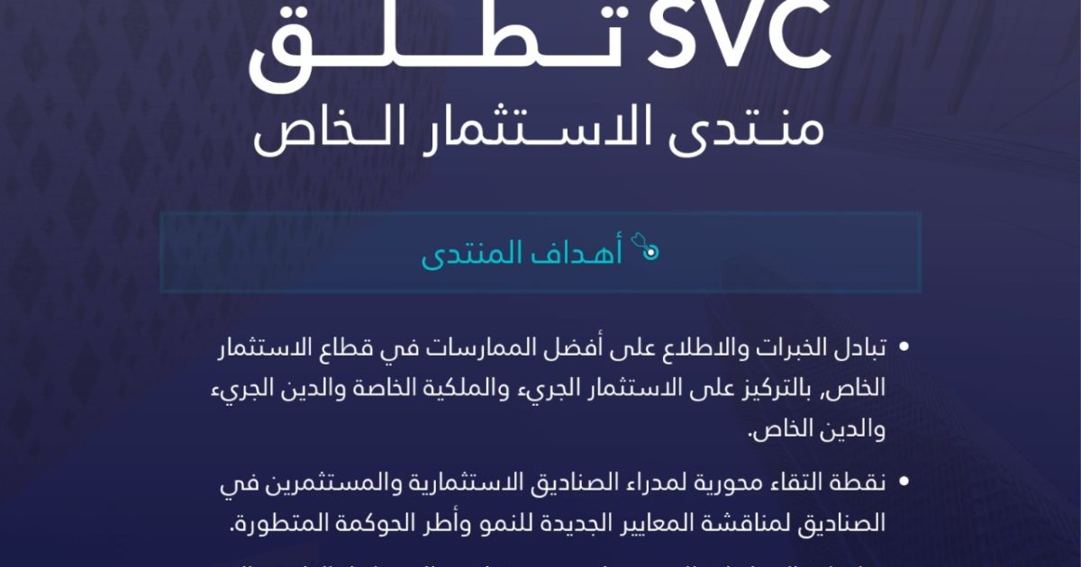 أعلنت السعودية للاستثمار الجريء (SVC) عن تنظيم منتدى الاستثمار الخاص (Private Capital Forum 2025)، وهو المنتدى الأول من نوعه في المملكة العربية السعودية الذي يركز على منظومة الاستثمار الخاص (الاستثمار الجريء، الملكية الخاصة، الدين الجريء والدين الخاص). وذلك في مركز الملك عبدالله المالي (KAFD) بالعاصمة الرياض يومي 22 و23 أكتوبر 2025.
