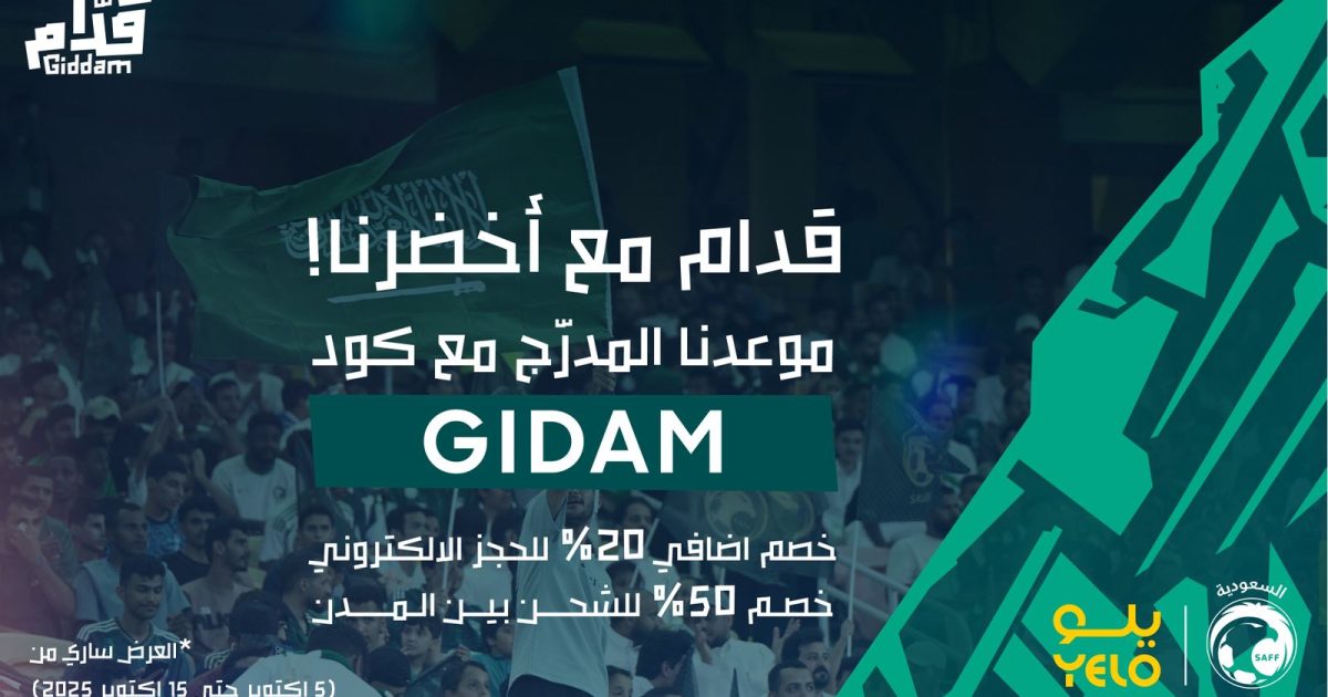 وتشمل العروض المقدمة من “يلو” خصماً بنسبة 20% عند الحجز الإلكتروني عبر الموقع الرسمي ( https://yelo.onelink.me/z7Tl/infGIDAM ) أو تطبيق “يلو”، بالإضافة إلى خصم مميز بنسبة 50% على خدمة الشحن بين المدن عند استخدام الكود الترويجي “GIDAM” وذلك حتى يوم ١٥ اكتوبر الجاري. وتستهدف هذه العروض تمكين أكبر عدد من المشجعين من الحضور وتشجيع المنتخب في أهم محطاته نحو تحقيق حلم التأهل العالمي.