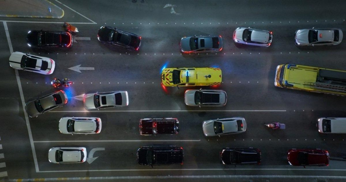 «في الطرق الرئيسة»: تستخدم مركبات الطوارئ المسار الأيسر في الطرق الرئيسة ويجب على السائقين إفساح المجال لها بالانتقال إلى المسار الأيمن فور اقترابها.