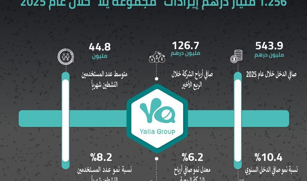 : أعلنت “مجموعة يلا” المحدودة، التي تتخذ من الإمارات العربية المتحدة مقراً لها ومالكة أكبر منصة تواصل اجتماعي وألعاب في الشرق الأوسط وشمال إفريقيا عن نتائجها المالية غير المدققة للعام المالي المنتهي 31 ديسمبر 2025 بالإضافة إلى النتائج المالية للربع الأخير من العام نفسه، مؤكدة استمرارها في تحقيق نمو مستقر وتعزيز مكانتها في قطاع الترفيه الرقمي المتنامي في المنطقة.