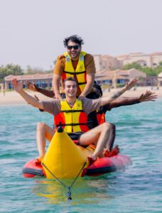 وتشمل الباقة وجبة إفطار شهية لشخصين بالغين وطفلين لا يزيد عمرهما عن ست سنوات، مع إمكانية الاستمتاع بركوب قارب “الموز” برفقة جميع أفراد العائلة لمدة 15 دقيقة، بالإضافة إلى إمكانية استكشاف المياه الهادئة لمدة ساعة كاملة على قارب الكاياك و بالتجذيف وقوفًا، في فرصة مثالية للاتحاد بالطبيعة والاستمتاع بجمالها وروعتها.