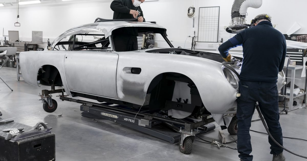 ويتم تنفيذ عمليات تصميم وتطوير النسخة الجديدة من دي بي 5 جولدفينجر، التي تستغرق 4500 ساعة عمل تقريباً في قسم العمليات الخاصة لدى أستون مارتن الكائن في بلدة نيوبورت باجنيل بمقاطعة باكينجهامشاير، وهو الموقع العريق المتخصص ببناء وتطوير سيارات أستون مارتن التاريخية. ويشكّل هذا القسم حالياً أكبر منشآت أستون مارتن العالمية التي تضم أحدث التجهيزات والخبرات اللازمة لعمليات تجديد وصيانة السيارات الرياضية للعلامة، بفضل كوادر متمرّسة ومؤهلة لتنفيذ مشاريع إعادة تطوير الطرازات التاريخية للعلامة.