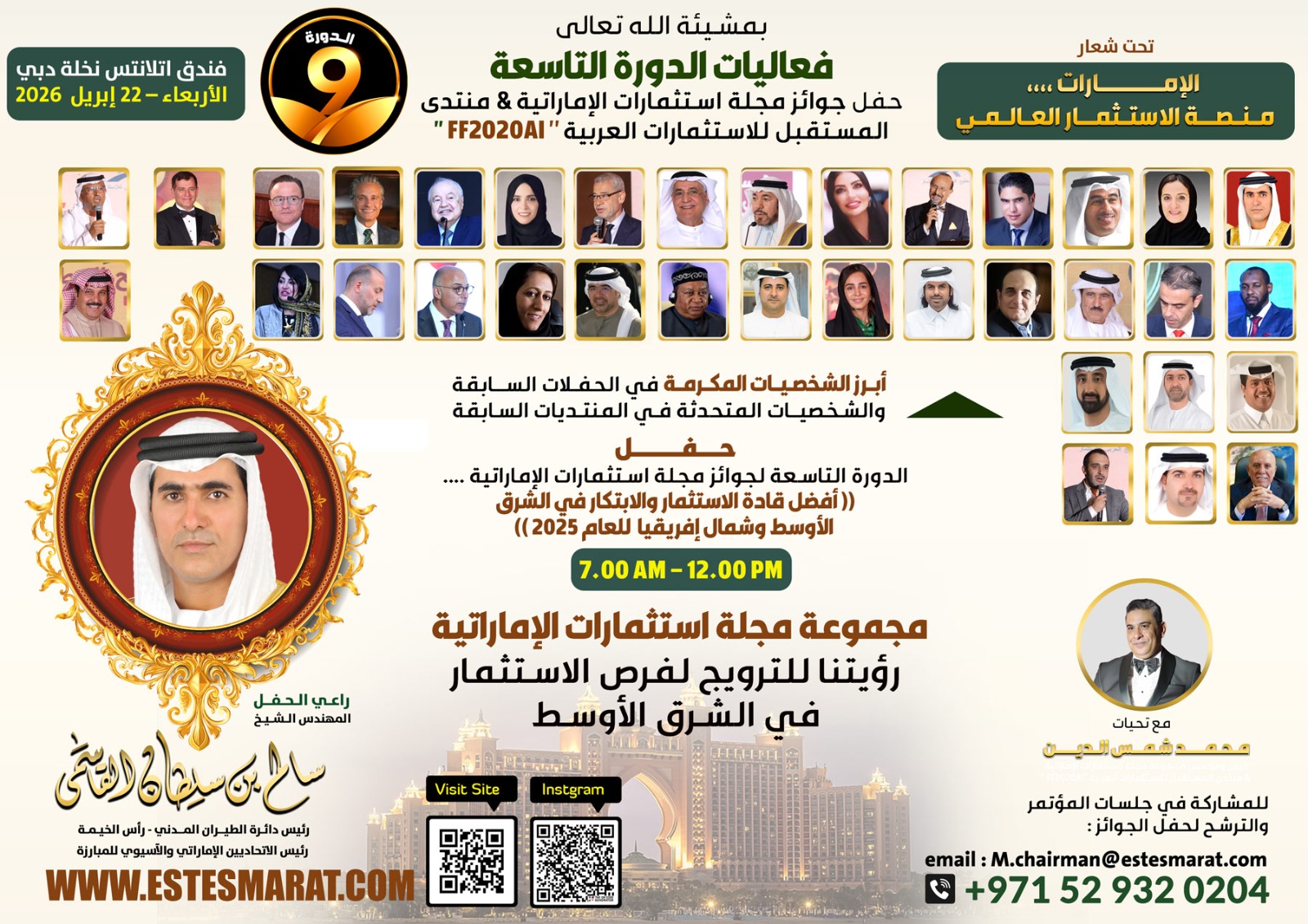 متابعة القراءةأبوظبي: سفر نيوز أعلنت مجموعة مجلة استثمارات الإماراتية عن رعاية المهندس الشيخ / سالم بن سلطان القاسمي، رئيس دائرة الطيران المدني - رأس الخيمة & رئيس الاتحاديين الإماراتي والآسيوي للمبارزة، لفعاليات الدورة التاسعة لجوائز مجلة استثمارات الإماراتية، والتي ستعقد شهر إبريل المقبل بفندق اتلانتس نخلة دبي، وبحضور حشد من كبار