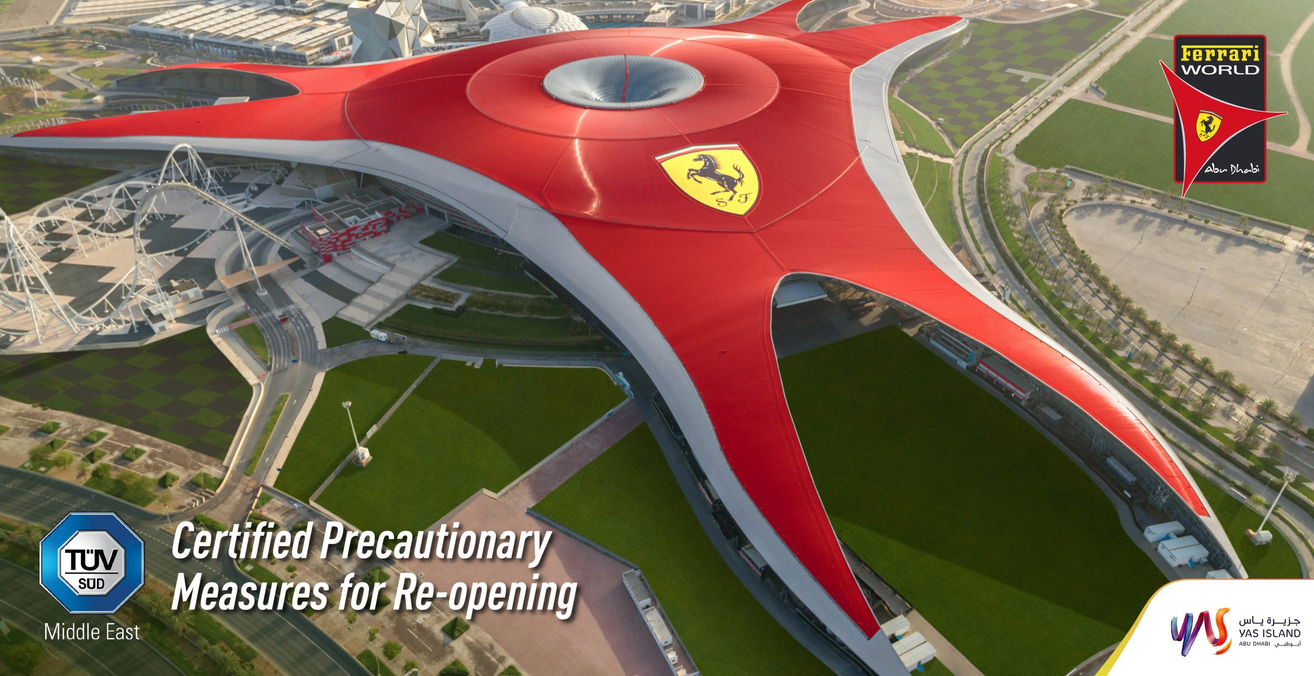 أبوظبي: سفر نيوز مع معاودة ترحيبها بالضيوف من مختلف أنحاء دولة الإمارات العربية المتحدة، أعلنت كل من عالم فيراري أبوظبي، وعالم وارنر براذرز أبوظبي، وياس ووتروورلد أبوظبي وكلايم عن حصولها على شهادة المطابقة للإجراءات الصحية الخاصة بكوفيد – 19 من الهيئة الفنية لمراقبة الجودة (TÜV SÜD)، التي تعتبر إحدى الهيئات العالمية