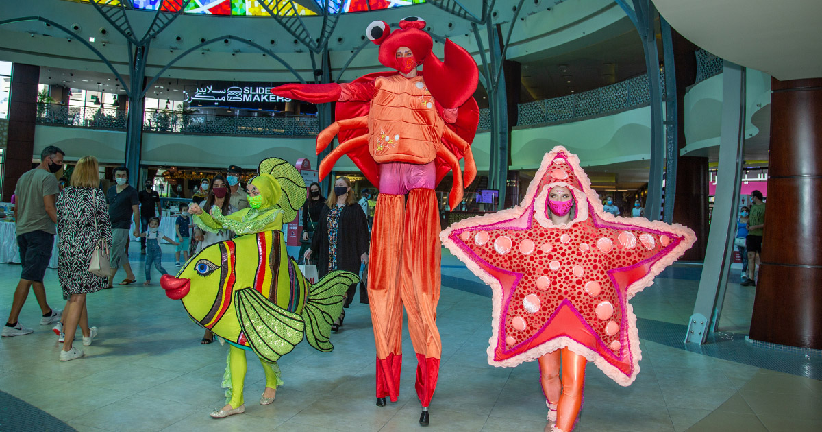 وخلال عطلة نهاية الأسبوع الطويلة، قدّمت “الحمرا” للعائلات مجموعة لا تنسى من التجارب المدهشة التي تضمنت موكباً غنياً بالألوان المشرقة وعروضاً مسلية يقدمها الراقصون ولاعبوا الخفة والبهلوانيون، في ظل حرص بالغ على الالتزام بكافة التوجيهات وإجراءات الصحة والسلامة الصادرة عن الهيئات الحكومية المتخصصة. وشارك في العرض موكبٌ من الفنانين الاستعراضيين الذين ارتدوا أزياء تحاكي أشكال المخلوقات البحرية الغامضة لإضفاء عنصر بصري مذهل.