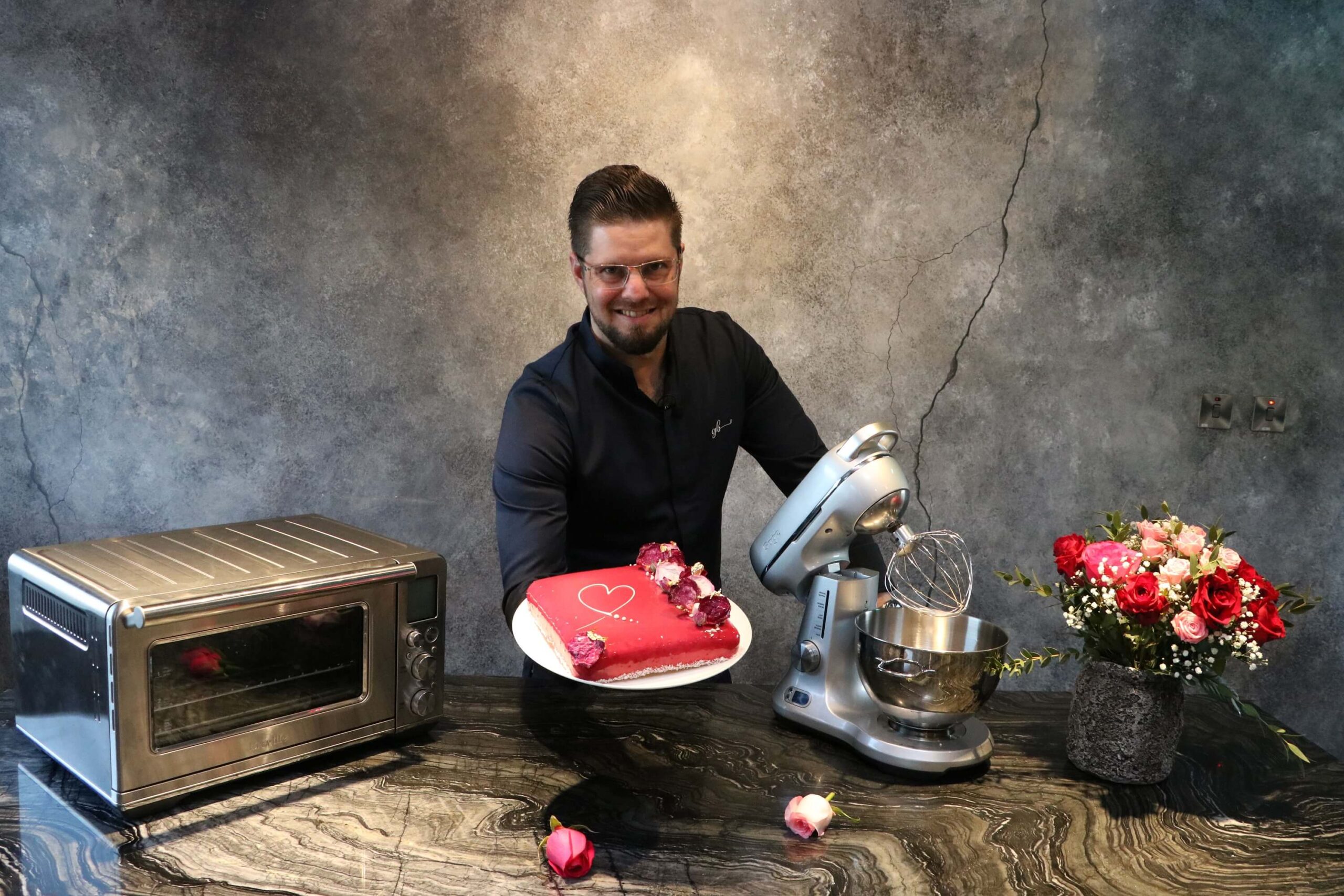 وتم ابتكار كعكة “الورد والحليب” بمساعدة جهازين رئيسيين متطورين من أجهزة سيج “Sage” هما فرن ومقلاة هوائية “ذا سمارت اوفن اير فراير” ‘The Smart Oven Air Fryer’ و خلاط “ذا بيكري بوس” ‘the Bakery Boss’.