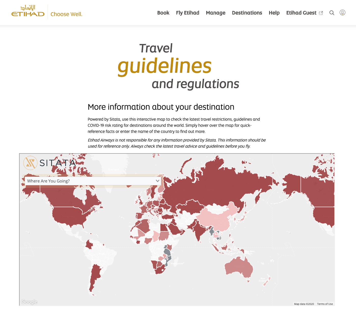 أبوظبي: سفر نيوز أبرمت الاتحاد للطيران، الناقل الوطني لدولة الإمارات العربية المتحدة، شراكة مع سيتاتا (SITATA) شركة إدارة مخاطر السفر الكندية، لإطلاق خريطة تفاعلية عبر موقع شركة الطيران الرسمي etihad.com، تتيح لضيوف الاتحاد إمكانية الحصول على معلومات عامة وشاملة حول الوضع القائم المتعلق بفيروس كورونا في كل وجهة من وجهات الاتحاد