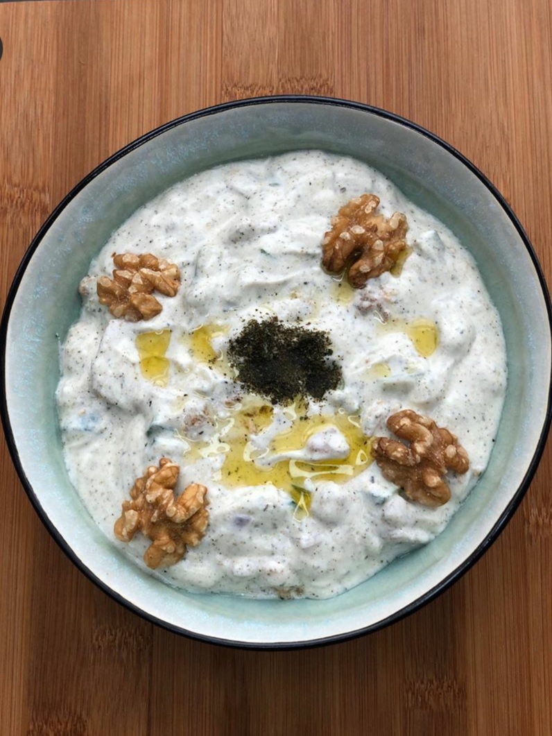سلطة طهران ...اعداد : ديما الاسطل تتكون سلطة طهران من الخيار واللبن الزبادي و الزبيب و الجوز، وتختلف عن سلطة الزبادي التقليدية بإضافة طعم حامض حلو للنكهة، و هذا ما يميز المطبخ الإيراني