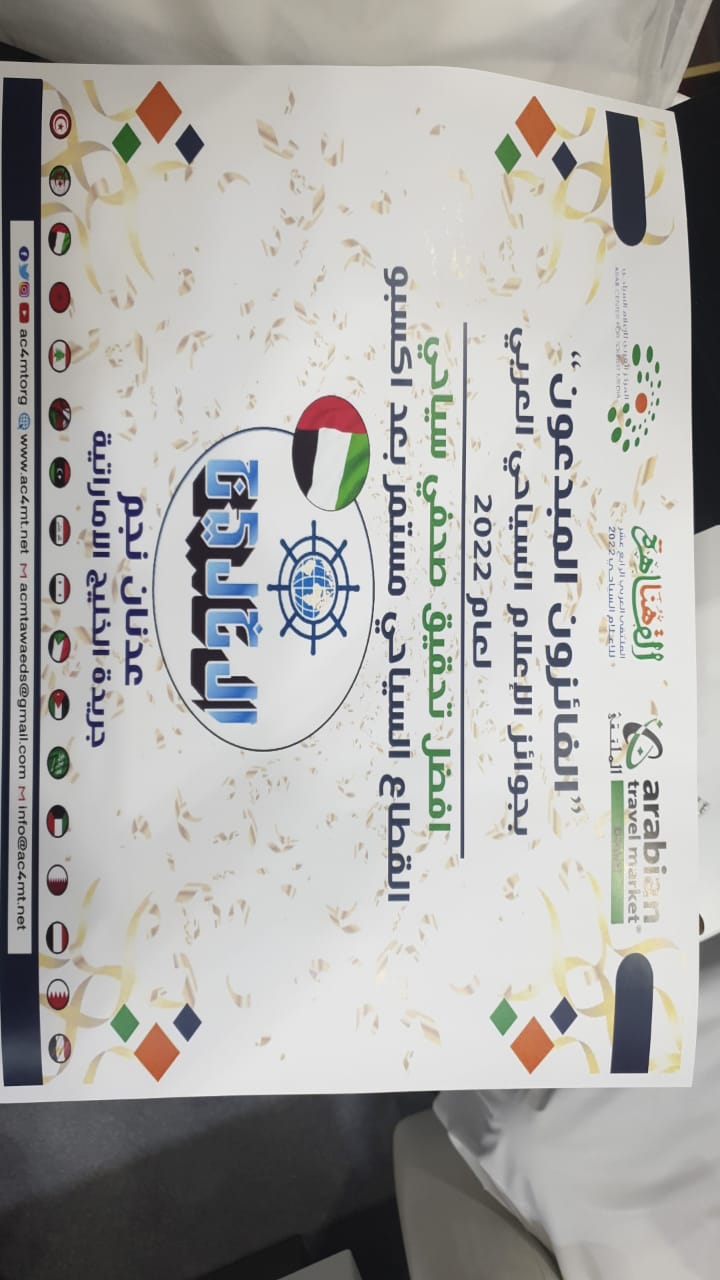 وحصل معرض (اكسبو 2020 دبي) على جائزة أفضل معرض سياحي عربي، بينما فاز بجائزة أفضل حساب يهتم بالسياحة العربية على (فيس بوك) صفحة “حلاوة مصرنا”.