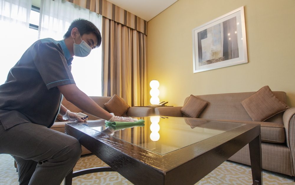 واستجابةً للخطوات والإجراءات المبدئية التي يتم اتخاذها لرفع القيود المرتبطة بجائحة كوفيد-19، بدأت مجموعة تايم تطبيق سلسلة من إجراءات التعقيم المكثف في جميع منشآتها الفندقية في دولة الإمارات العربية المتحدة والسعودية ومصر، وذلك بهدف تعزيز مستوى النظافة في كافة أقسام الفنادق، لاسيما في ردهات الاستقبال، وبالتأكيد في الغرف الفندقية لضمان سلامة وصحة الضيوف.